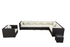 OUTFLEXX Loungemöbel-Set, Braun, Polyrattan, 5 Personen, Wasserfeste Kissenbox, Inkl. Loungetisch