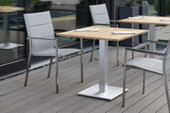 STERN Cardiff Stapelsessel, Silber/taupe, Edelstahl/Textil, Ca. 61x57x92 Cm, Armlehnen FSC-Teak