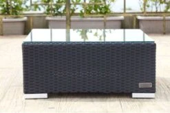 OUTFLEXX Beistelltisch/Hocker, Schwarz, Polyrattan, Inkl. Glasplatte Und Polster