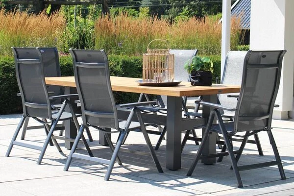 Der Multipositionssessel aus der Alice-Serie weiß durch seine qualitativ hochwertige Verarbeitung und seine Stabilität zu überzeugen. Ob Sie sich zurücklehnen wollen oder gemütlich am Esstisch sitzen möchten, durch die mehrfache Verstellbarkeit finden Sie die optimale Sitzposition. Das Gestell aus robustem Aluminium sorgt für ein geringes Eigengewicht von ca. 5,2 kg, trotzdem kann der der Stuhl mit bis zu 130 kg belastet werden. Um Ihren Terrassenboden beim Verschieben zu schützen, verfügt der Stuhl über praktische Bodenschoner. Dank der vorteilhaften Stoffzusammensetzung der anthrazitfarbenen Textilenbespannung aus 70% Polyvinylchlorid und 30% Polyester profitieren Sie von einer langen Haltbarkeit. Sie werden gar nicht mehr aufstehen wollen, denn das witterungsbeständige Material ist durch seine Flexibilität auch ohne Auflagen sehr bequem.