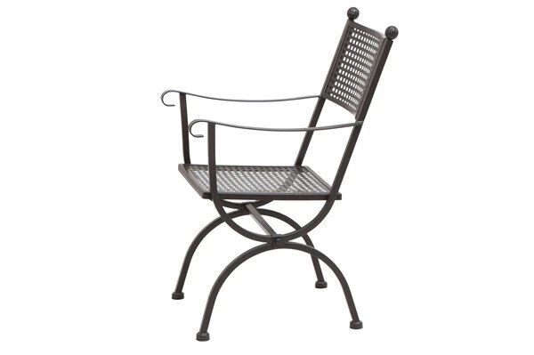 Die zeitlose Form, robust und filigran zugleich, kombiniert die hohen Ansprüche moderner Möbel mit klassischem Design. Zu den prägenden Elementen der Romeo-Serie zählen unter anderem die geschwungene Konstruktion und die gelochten Sitz- und Liegeflächen. Verspielte Details wie die abgerundeten Armlehnen und die Zierkugeln an der Rückenlehne machen den Sessel zu einem echten Blickfang. Das aufwendig von Hand geschmiedete Eisengestell zeichnet sich durch seine hohe Stabilität und Haltbarkeit aus und kann mit bis zu ca. 110 kg belastet werden. Es wurde in einem aufwendigen Verfahren verzinkt und anschließend in Marone pulverbeschichtet. Dadurch ist der Gartensessel gegen äußere Witterungseinflüsse optimal geschützt und eignet sich perfekt für den Outdooreinsatz.