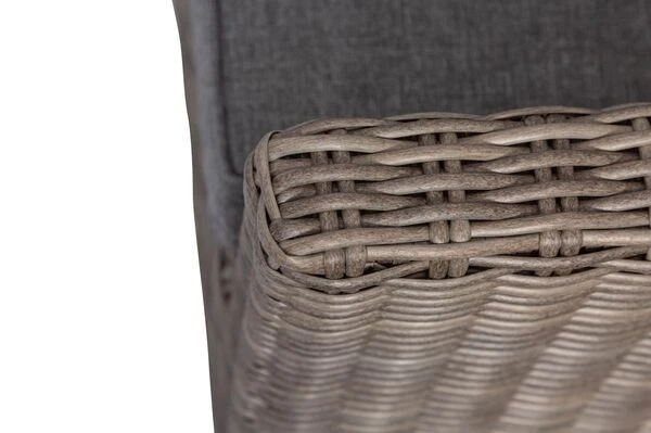 Ihre neuen Gartenmöbel sind außerdem äußerst pflegeleicht und strapazierfähig, da die verwendete, halbrunde Faser sowohl Hitze und Frost als auch UV-Strahlen, Salzwasser und Chlor unbeschadet hinnimmt und nichts von ihrer ursprünglichen Schönheit einbüßt. Im Inneren befindet sich ein rostfreies Aluminiumgestell, welches für die nötige Stabilität sorgt und aufgrund des geringen Gewichts einen einfachen Platzwechsel ermöglicht. Alle Module verfügen über edle Aluminiumfüße, die dank der Kunststoffnoppen Ihren Bodenbelag schonen und einen schönen Kontrast zur Polyrattanfaser bilden.