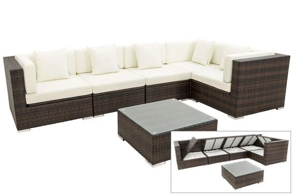 Loungemöbel-Set aus Polyrattan mit Kissenboxfunktion in braun-marmoriert für bis zu 5 Personen
