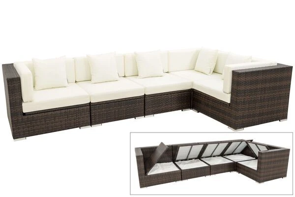 Loungemöbel-Set aus Polyrattan mit Kissenboxfunktion in braun-marmoriert für bis zu 5 Personen