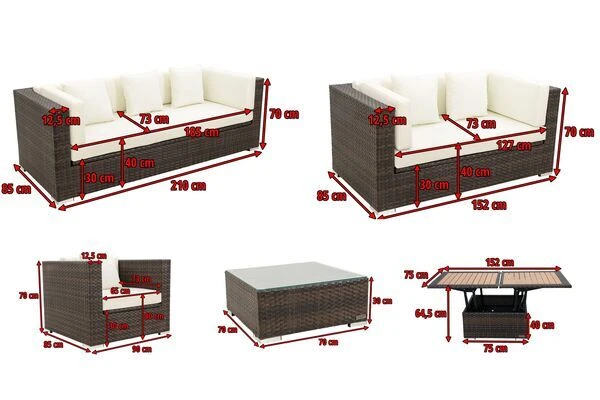 - Sitz- & Rückenkissenstärke: ca. 10 cm