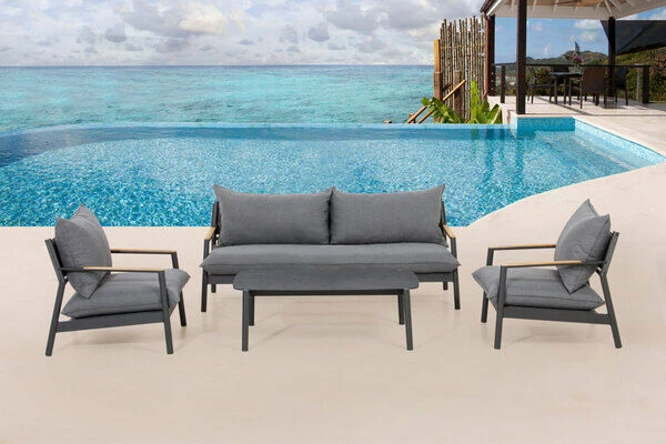 OUTFLEXX® Monti Loungemöbel, dunkelgrau, Alu/Teak/Keramikglas/Polyester, für 4 Personen, inkl. Loungetisch