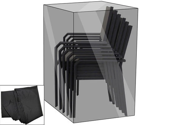 wasserbeständige OUTFLEXX® Premium Abdeckhaube für Stapelstühle mit den Maßen (gestapelt) ca. 62 x 62 x 80/120 cm