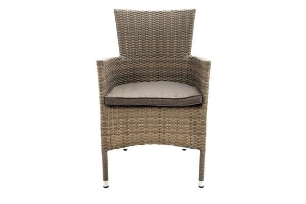 Dieser gemütliche Stapelsessel passt sich perfekt an Ihren Garten oder die Terrasse an. Der Sessel hat ein Gesamtmaß von ca. 59 x 62 x 92 cm. Die Sitzfläche ist ca. 48,5 cm tief, die Sitzhöhe mit Kissen liegt bei ca. 47,5 cm. Die Armlehnen mit einer Höhe von ca. 66 cm sorgen bei diesem Sessel für besonderen Komfort. Mit seinem Gewicht von ca. 5 kg lässt sich der Stuhl ganz leicht verschieben. Bei Nichtgebrauch können Sie mehrere Stühle ganz leicht aufeinanderstapeln und diese platzsparend verstauen.