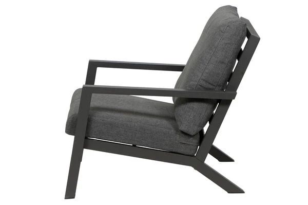 Modern und chic – dieser wetterfeste und pflegeleichte Loungesessel bietet höchsten Sitzkomfort gepaart mit modernem Design. Gönnen Sie sich ein wenig Luxus in Ihrem Alltag und verbringen Sie in gepflegter Atmosphäre den Tag auf Ihrer Terrasse: bei einem leckeren Frühstück, bei einer gemütlichen Mittagspause oder lassen Sie einfach den Tag entspannt ausklingen. Der bequeme Sessel macht es möglich und lädt Sie und Ihre Gäste jederzeit unaufdringlich zum Verweilen ein. Die praktischen ca. 50,6 cm hohen Armlehnen aus Aluminium bieten zusätzlichen Komfort. Der Sessel hat ein Gesamtmaß von ca. 79 x 91 x 81 cm, die Sitzfläche ist ca. 65 cm breit, ca. 60,5 cm tief und die Sitzhöhe liegt bei ca. 30 cm, die perfekte Loungehöhe.