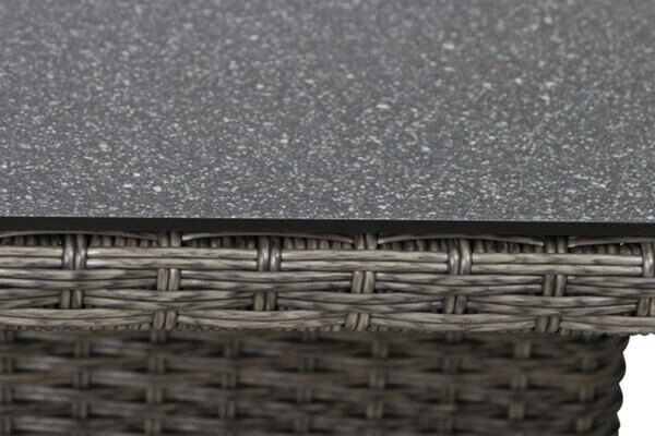 Diese gemütliche Loungegruppe bietet bequem bis zu sechs Personen Platz. Die Sitzhöhe von ca. 32 cm macht die Lounge zum Allround Talent – hier können Sie gemütlich in der Sonne liegen, aber auch ganz bequem ein leckeres Abendessen zu sich nehmen. Das Set besteht aus zwei 2er Sofas, einem Eckelement und einem einzelnen Mittelelement, so können Sie die Schenkellänge flexibel wählen und die Lounge bequem an Ihre Gegebenheiten zuhause anpassen. Der praktische Esstisch bietet dank seiner Maße von ca. 130 x 75 x 40/52/65 cm genügend Platz. Der Tisch ist ideal als Kaffee- und Esstisch einsetzbar: Dank der variablen Tischhöhe müssen Sie auf keinen Komfort verzichten. Durch ein Fußpedal können Sie mittels eines Hydrauliksystems zwischen 3 Tischhöhen wechseln. Der Tisch wird mit einer ca. 6 mm starken Spraystone Platte geliefert. Spraystone ist ein Kunststoff-Stein-Gemisch, das auf Sicherheitsglas aufgesprüht wird. Daraus ergibt sich eine pflegeleichte Oberfläche in einer eleganten Natursteinoptik. Die Platte ist mit einer zusätzlichen Beschichtung versehen, die Ihren Tisch vor Schmutz und Fett schützt. So entsteht eine sehr pflegeleichte Oberfläche, die sich mit einem milden Reiniger und einem Lappen kinderleicht pflegen lässt.