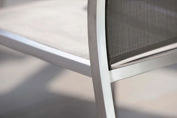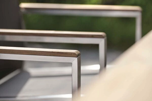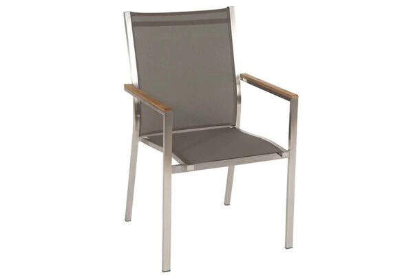 Stapelsessel Cardiff aus Edelstahl und Textilene mit Armlehnen aus FSC-Teakholz von Stern