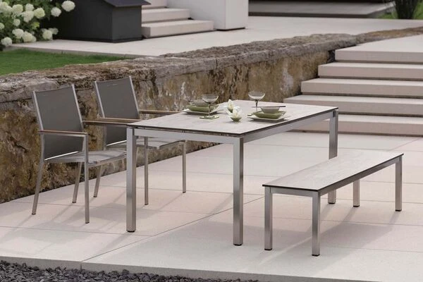 | Wetterfest, pflegeleicht und UV-beständig Sowohl Edelstahl als auch das verarbeitete Textilgewebe sind besonders pflegeleicht und trotzen Sonne, Wind und Wetter. Verschmutzungen lassen sich mit wenig Aufwand und etwas Wasser wieder entfernen. |
